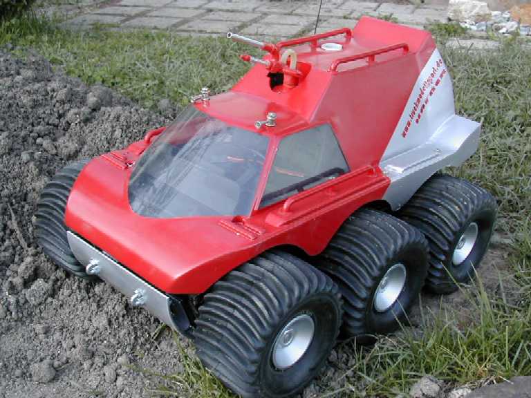 Amphibienfahrzeug Rodeo 6x6 von Robbe, alle 6 Räder angetrieben über zwei Motoren, Aufsatz mit funktionsfähigem Löschmonitor....... schon fast eine Rarität !! |